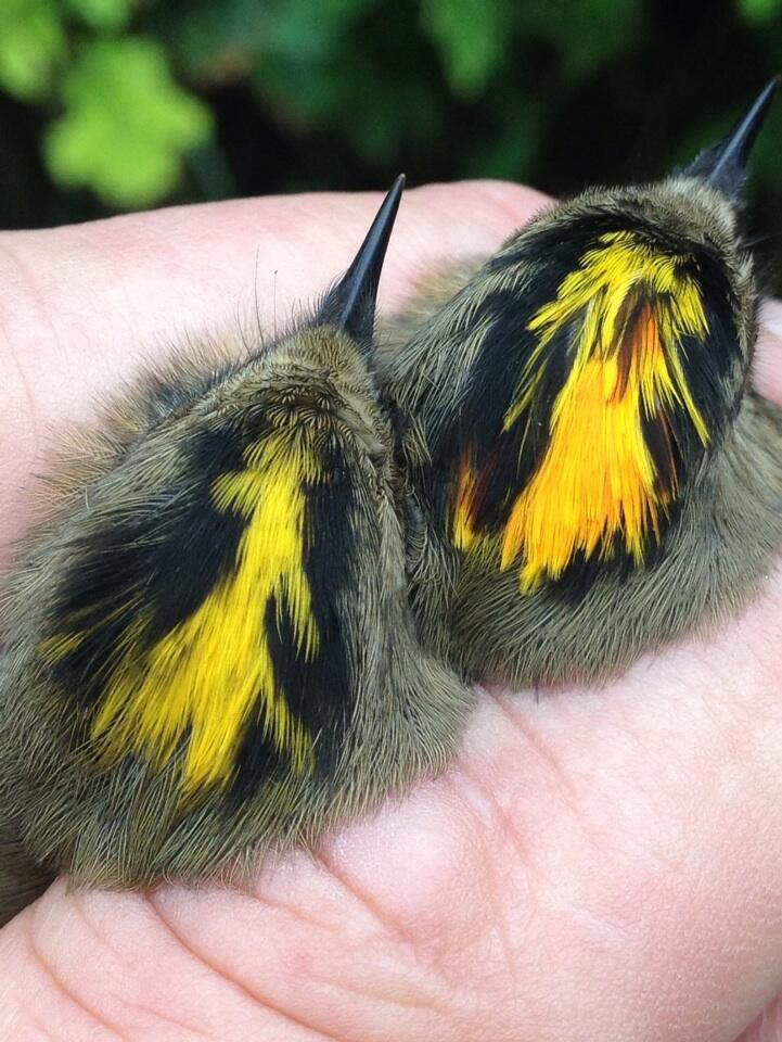 Goldcrests- male on the right and female on the left. (c) Steve Stansfield