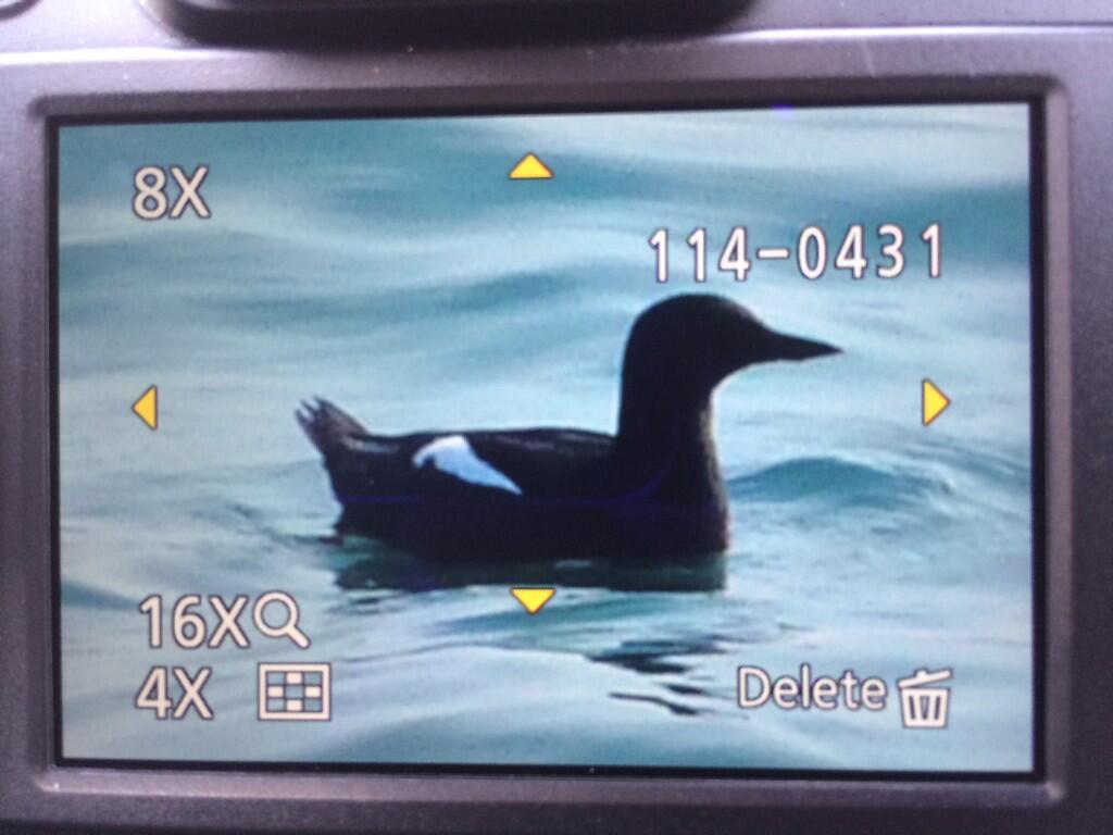 A back-of-the-camera image of the Black Guillemot (Tystie) off the North End this morning. (c) Mark Carter