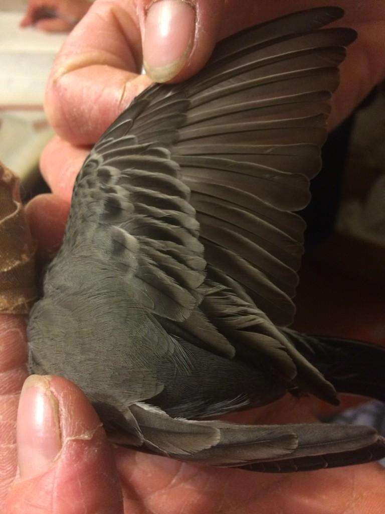 This adult female White Wagtail was trapped in Ty Pellaf Reed Bed during an evening mist netting session at the wagtail roost. The bird was carrying four colour rings and a BTO ring, which could be used to promptly track down the origins of this bird. It turns out that this individual was ringed on the 16th of September 2012 in Slapton Marshes, Devon. Last year, this same bird was re-sighted in North-west Iceland, on the 30th of July 2013!