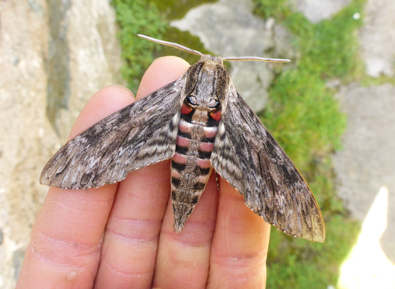 The first Convolvulus Hawkmoth of the year followed suite on last year's records, turning up in the catching area of the observatory's Heligoland trap. After being found early in the morning, a second moth was discovered on the door of the trap later in the day!