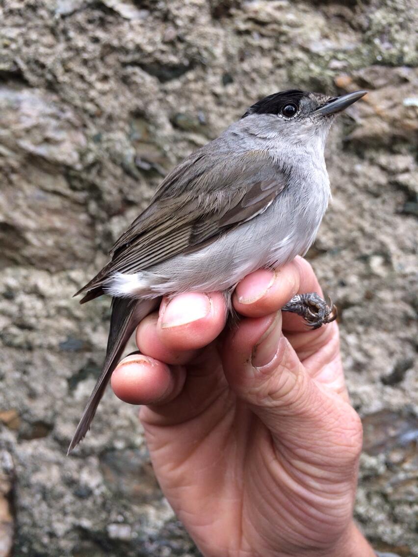 This male Blackcap was literally bulging with fat stores, with a fat/muscle score of 6/3. One would expect a little less fat on a freshly-arrived migrant, considering that some passerine migrants can lose as much as 50% of their initial body mass during trans-Saharan flights. This might indicate that this bird is not a 'true' migrant.