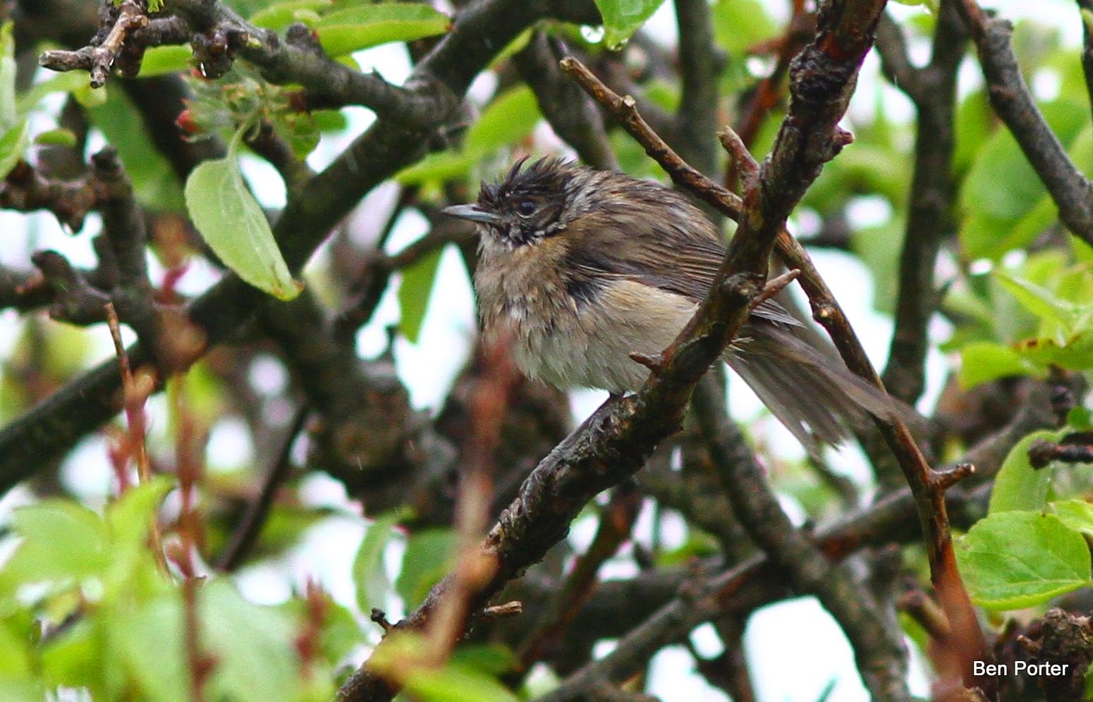 2. Hi Steve- I don't believe the damp bird was a Whitethroat: there was no white in any of its outer TF, and the head/facial pattern was also incorrect. In the field, it looked like either a Garden Warbler or a Blackcap, and a hint of chestnut in the crown would suggest a female Blackcap.