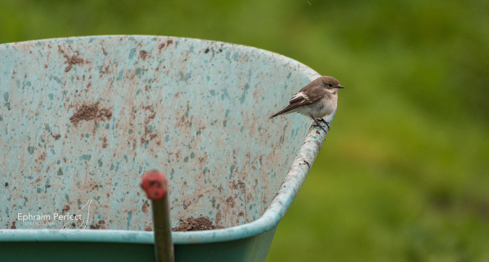 There's been a distinct lack of Robins on the island this year, so when Billy got the wheelbarrow out this afternoon it was up to the female Pied Flycatcher to act as gardener's friend in their absence.