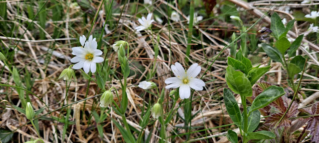 Stuart has recorded several more plant species starting to flower. Greater Stitchwort was seen at Cristin Withy and Brackish Water-crowfoot was seen at Nant Pond. Small Adder's Tongue grows in a patch behind Plas Withy and is a rare fern that is limited to coastal dry grassland and thrives on islands on the west coast of Britain.